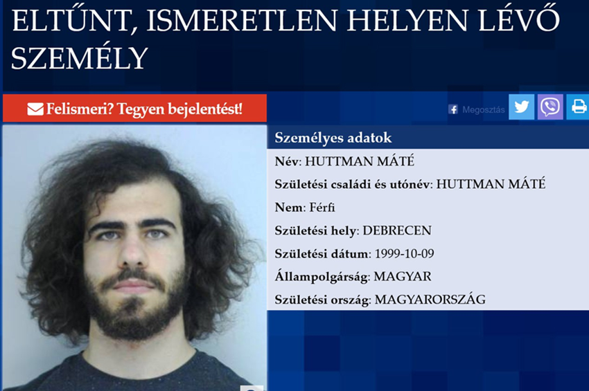 A Püspökladányi Rendőrkapitányság a csónakbaleset napján rendelte el eltűnés miatt Huttman Máté körözését – írja a Blikk.