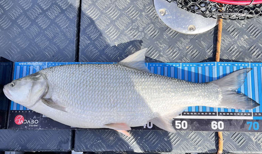 Ezt követően a felerősödött szél miatt átmentek túlpartra, ahol több, kis ütés után egy jászkeszeg kapta el a csalit.